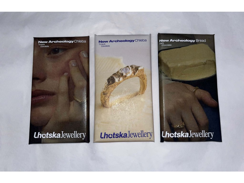 Limitovaná edice čokolád obsahuje 3 různé designy obalu - prsten v másle, portrét a detail ruky. Pokud některý vizuál preferujete, prosíme, uveďte do poznámky.