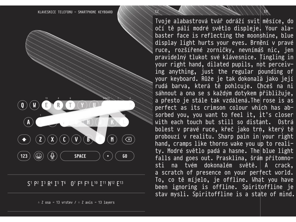 Kreslíš slova. Prstem po displeji doleva, doprava, nahoru a dolů. Bread, gold, qwerty, together. Všechno se slévá v jedno, ve své mysli vnímám ten obraz.